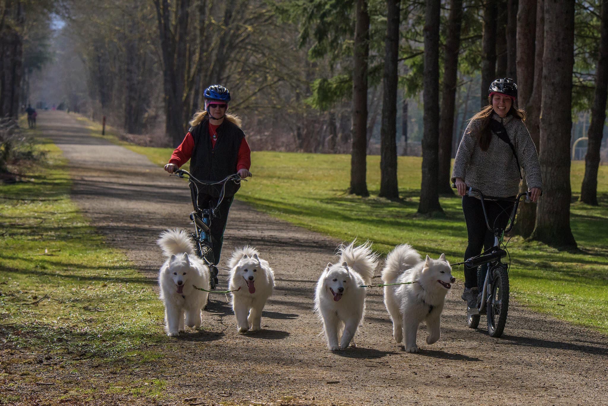 It really just depends on your activity level! Samoyeds love to play in the snow, pull sleds, eat snowballs, and go for hikes or runs. You can take your Samoyed scootering - a form of sled team practice without the snow. Many do agility, nose work, weight pulls, and barn hunts! It really just comes back to your interests and we're glad to help you find those interests!